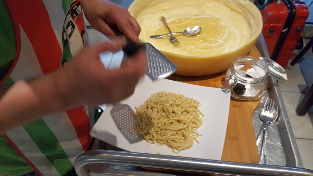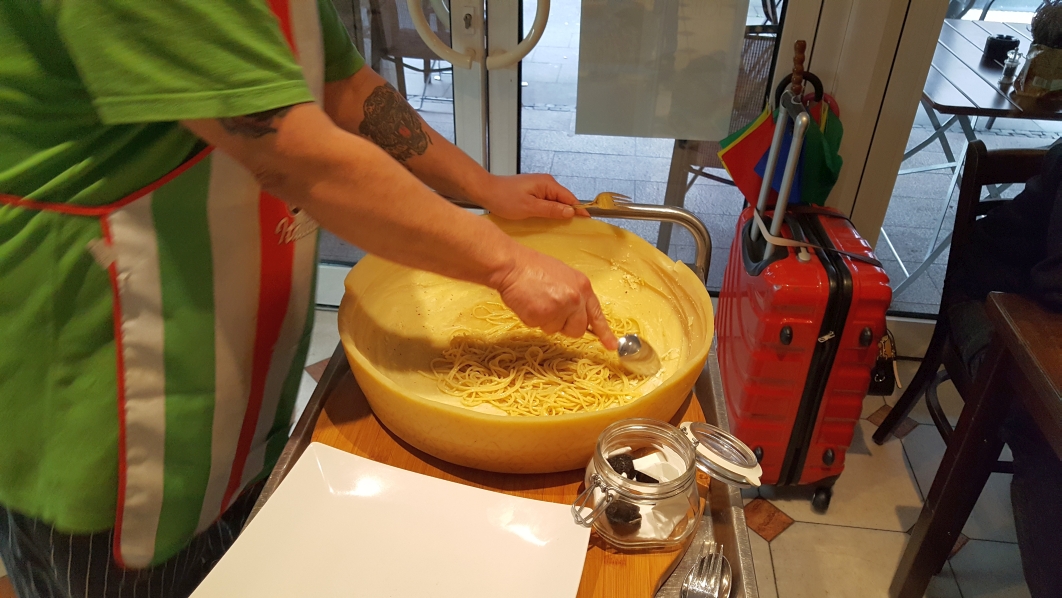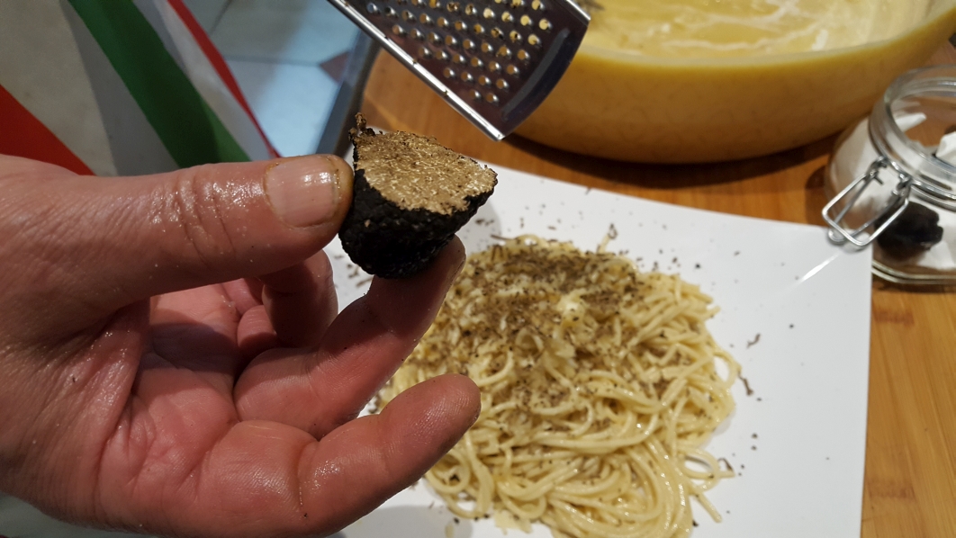 Spaghetti mit Trüffeln aus dem Parmesanlaib werden Sie begeistern.